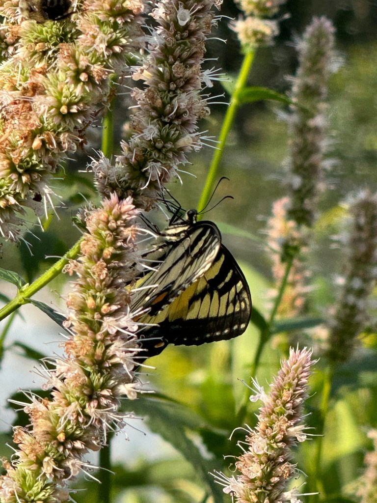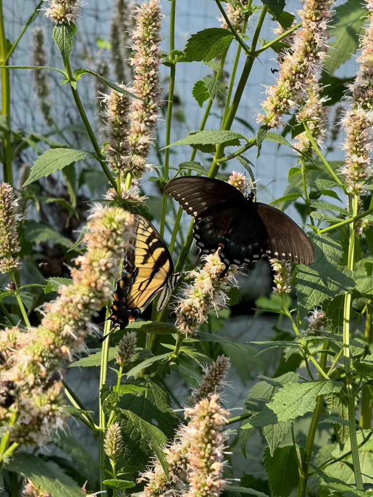 While doing chicken chores, the hyssop plants in the pollinator garden were alive with pollinators. I planted the hyssop plant a couple or three years ago and it has spread to 3-4 plants but this is the first time I have noticed it so alive with all these pollinators.